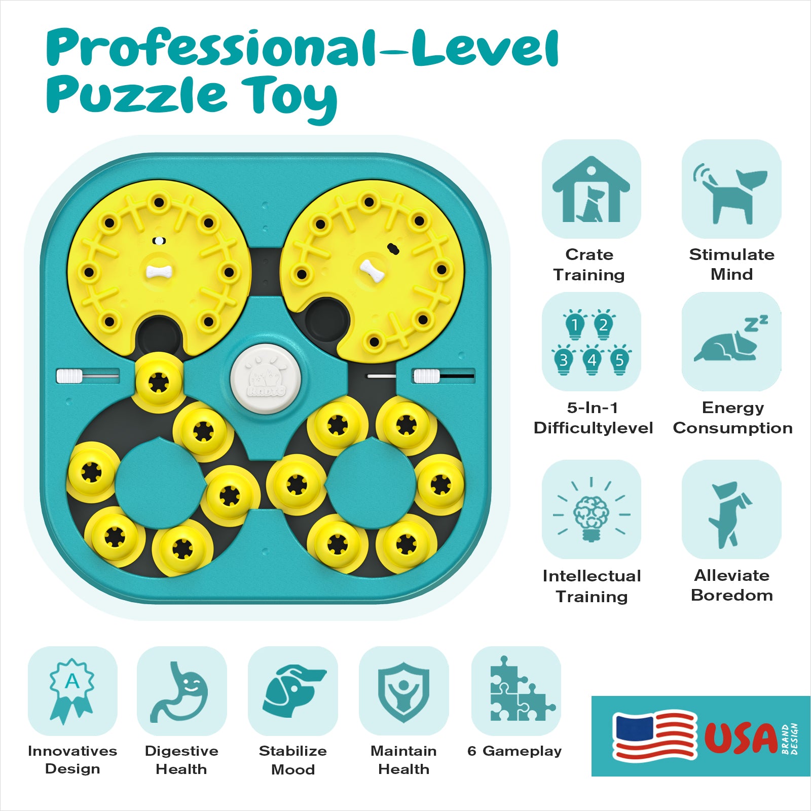 KADTC All-in-One Dog Puzzle Toy – 6 Games, 5 Difficulty Levels & Brainy Fun!Spark joy and brainpower with the KADTC All-in-One Dog Puzzle Toy! Featuring 6 fun games and 5 adjustable challenge levels, it delivers endless mental stimulation and enrichment. Made from non-toxic, BPA/PVC-free food-grade ABS, it’s safe, durable, assembly-free, and easy to use for dogs of all sizes. Watch your pup learn, bond and have a blast—this engaging playtime builds smarts, strengthens your connection and promotes healthy development! |