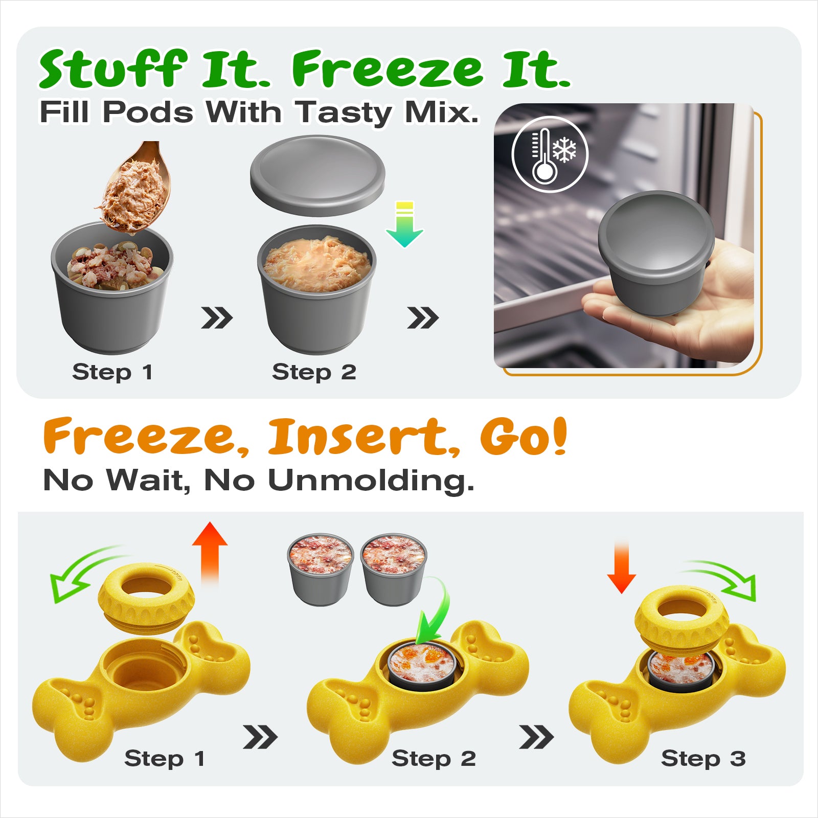 Exclusive Patented Freezer Mold – Freeze & Play InstantlyOur exclusive patented freezer mold eliminates the wait and mess when making frozen dog treats. Just fill and freeze the mold, then insert the frozen treat directly into the toy—no need to pop it out first. This saves time and hassle, so your dog can enjoy a tasty frozen treat right away. |