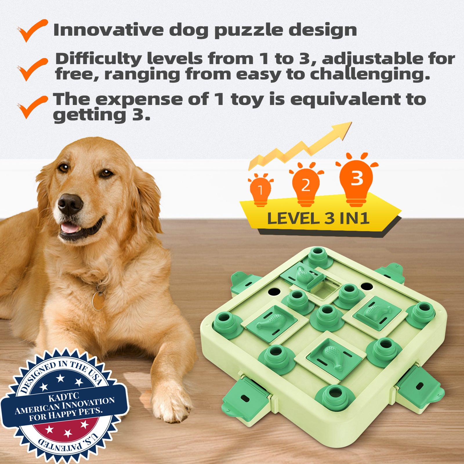 Challenge Made Smarter – 3-in-1 Difficulty Levels in One ToyLooking for a dog puzzle toy that won’t be too easy or lose its appeal after one use? KADTC’s innovative design combines three different difficulty levels into one toy—no need to buy multiple puzzles. Your dog can start from beginner, advance to intermediate, and finally master the challenge mode—all in a single, cleverly designed product. This multi-stage progression keeps your dog mentally stimulated, reduces boredom, and maximizes long-term value. One toy, three challenges—endless enrichment!