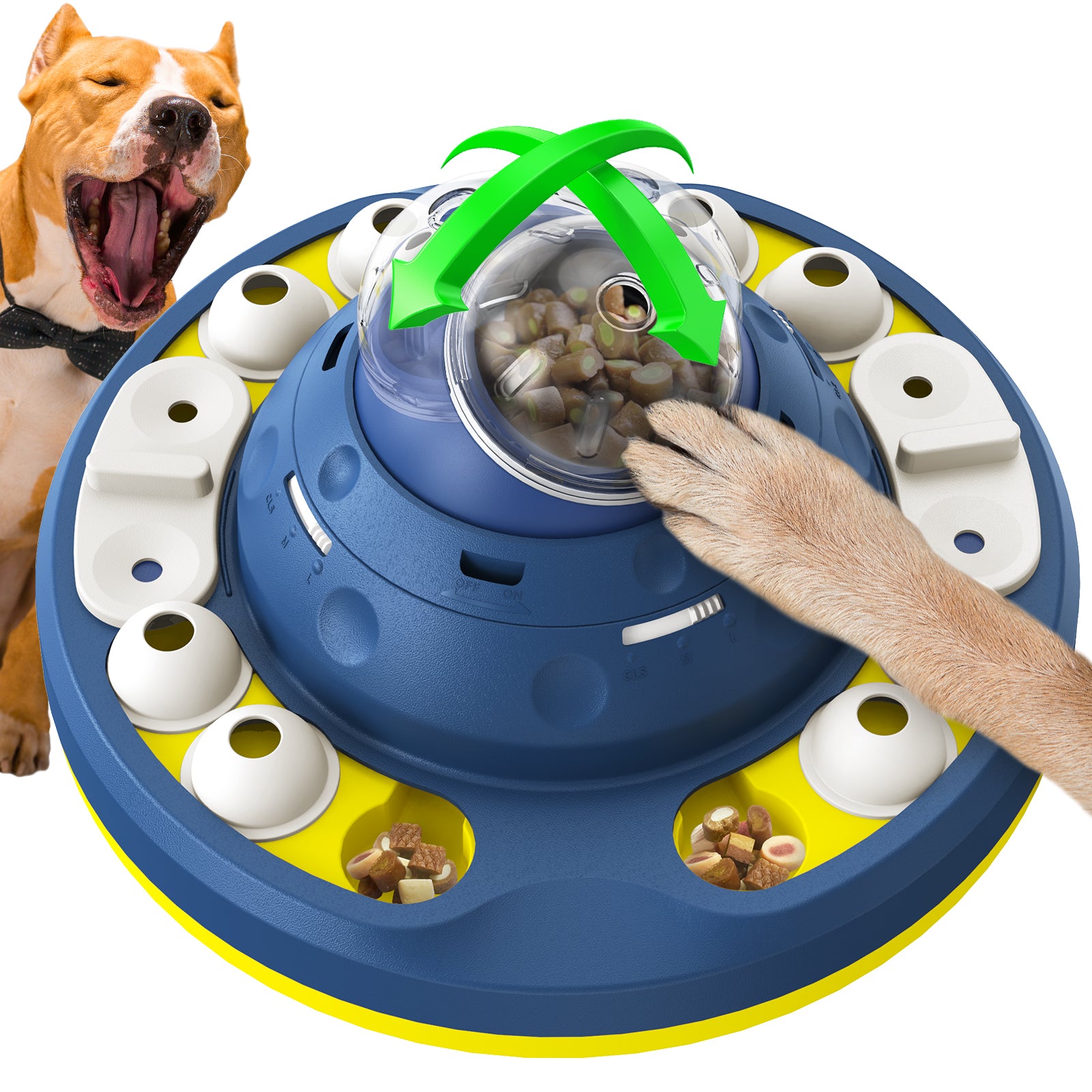 3-Level 3D Puzzle Feeder with Central Treat Hub & Adjustable ReleaseTurn meals into a smarter game. Fill the central food hub, then food releases as your dog shakes, paws, and slides to earn each bite. Use the built-in control switch to slow the flow for fast eaters. One toy = puzzle fun + slower, more satisfying feeding.
