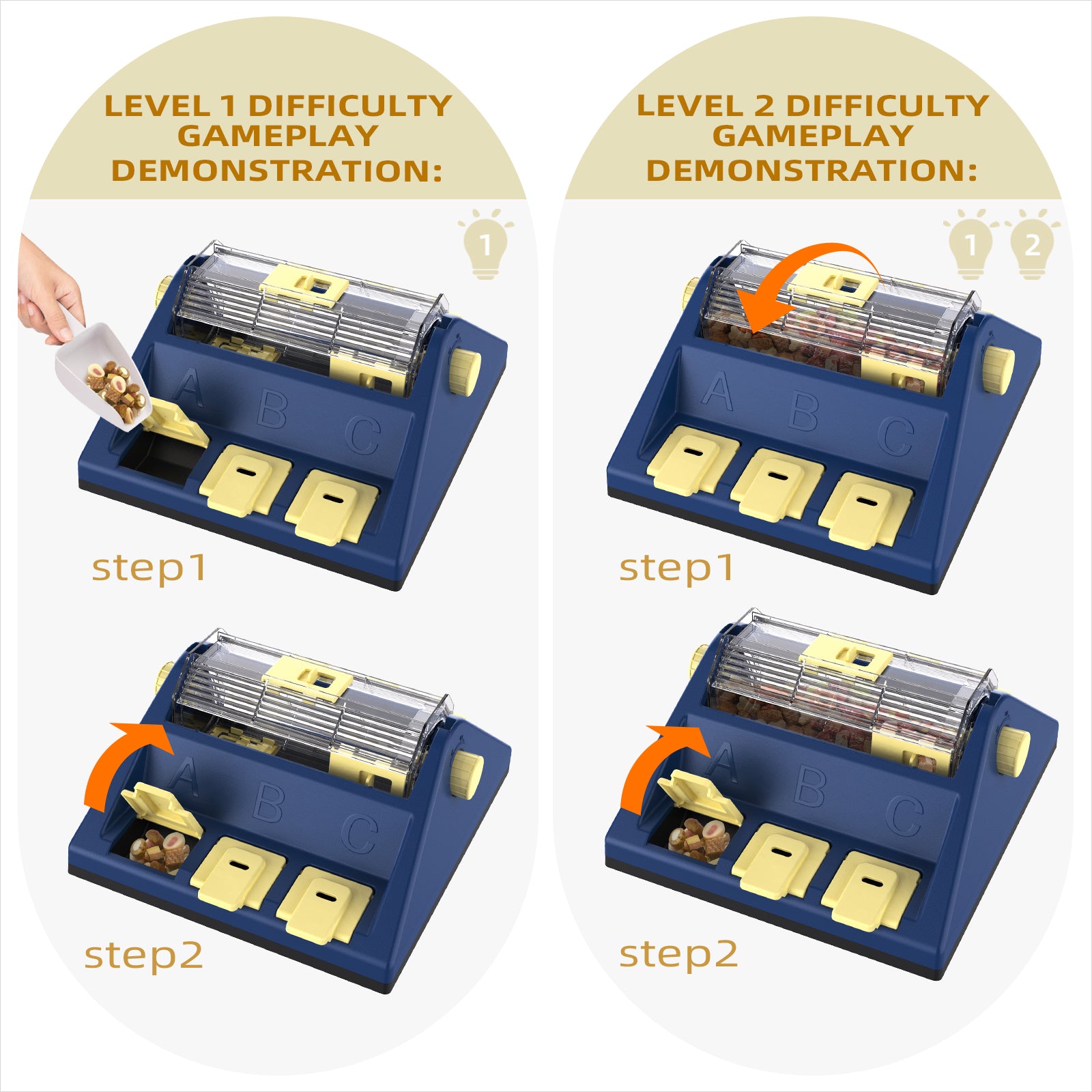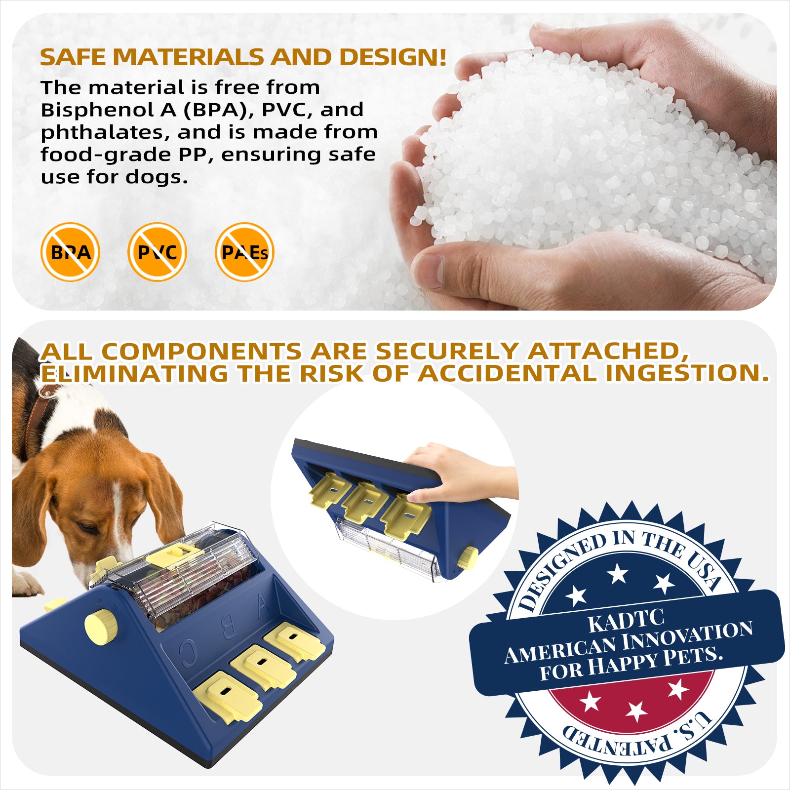The Ultimate Slow Feeder for Dogs! A Perfect Puzzle Toy!This innovative toy features a centralized food dispensing design, consisting of a large-capacity food storage compartment and six flip-lid treat boxes at the base. The food storage compartment includes four adjustable dispensing holes, allowing you to control the speed of food distribution by altering the hole size. This toy functions as both a puzzle game and a slow feeder, encouraging healthy, slow eating habits while providing mental stimulation and interactive playful for your dog. |