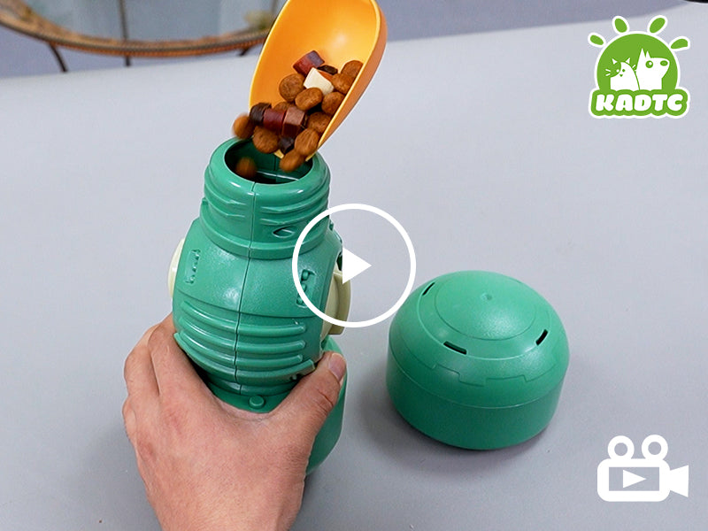 How to Add Food and Adjust the Control SwitchThe product is simple to use. To add food, simply rotate and open the outer casing on one side of the toy. If your dog’s preferred food size is between 0.5 to 0.7 inches, such as kibble or treats, we recommend using the front food dispensing hole. To adjust the hole size, rotate the control lever in the center of the toy clockwise or counterclockwise. If your dog prefers larger food sizes, such as jerky or larger kibble over 0.7 inches, we suggest using the rear dispensing hole. |