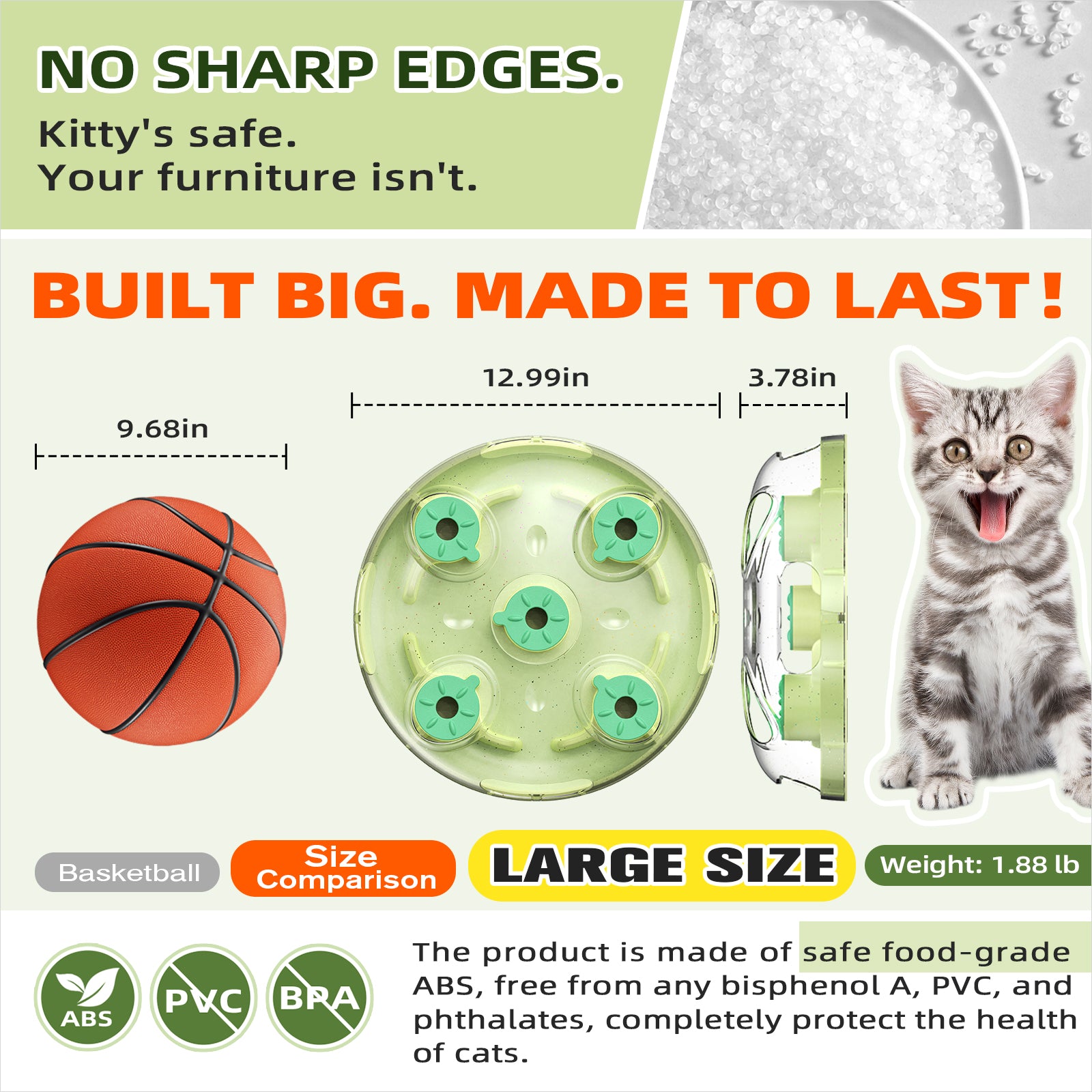 Safe cat toy, you can let your cat use it without worry!The main body of the toy is made from food-grade ABS, which is highly enduring and free from BPA, PVC, and phthalates. The product's surface features rounded edges, ensuring that your cat will not get scratched while using the toy. Both the raw materials and the product are extremely safe, so you can confidently allow your cat to use it. |