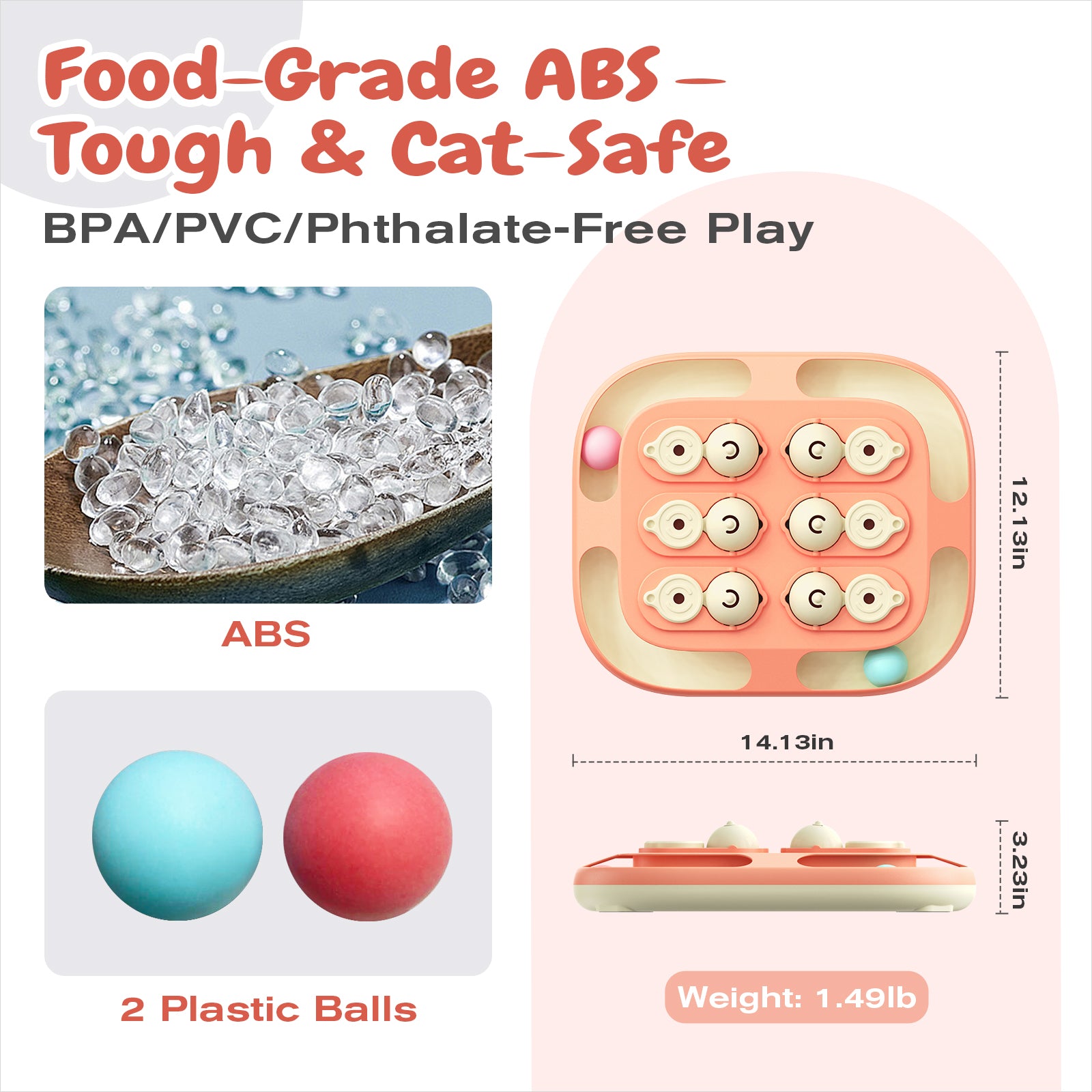Safe cat toy, you can let your cat use it without worry!The main body of the toy is made from food-grade ABS, which is highly enduring and free from BPA, PVC, and phthalates. The product's surface features rounded edges, ensuring that your cat will not get scratched while using the toy. Both the raw materials and the product are extremely safe, so you can confidently allow your cat to use it. |