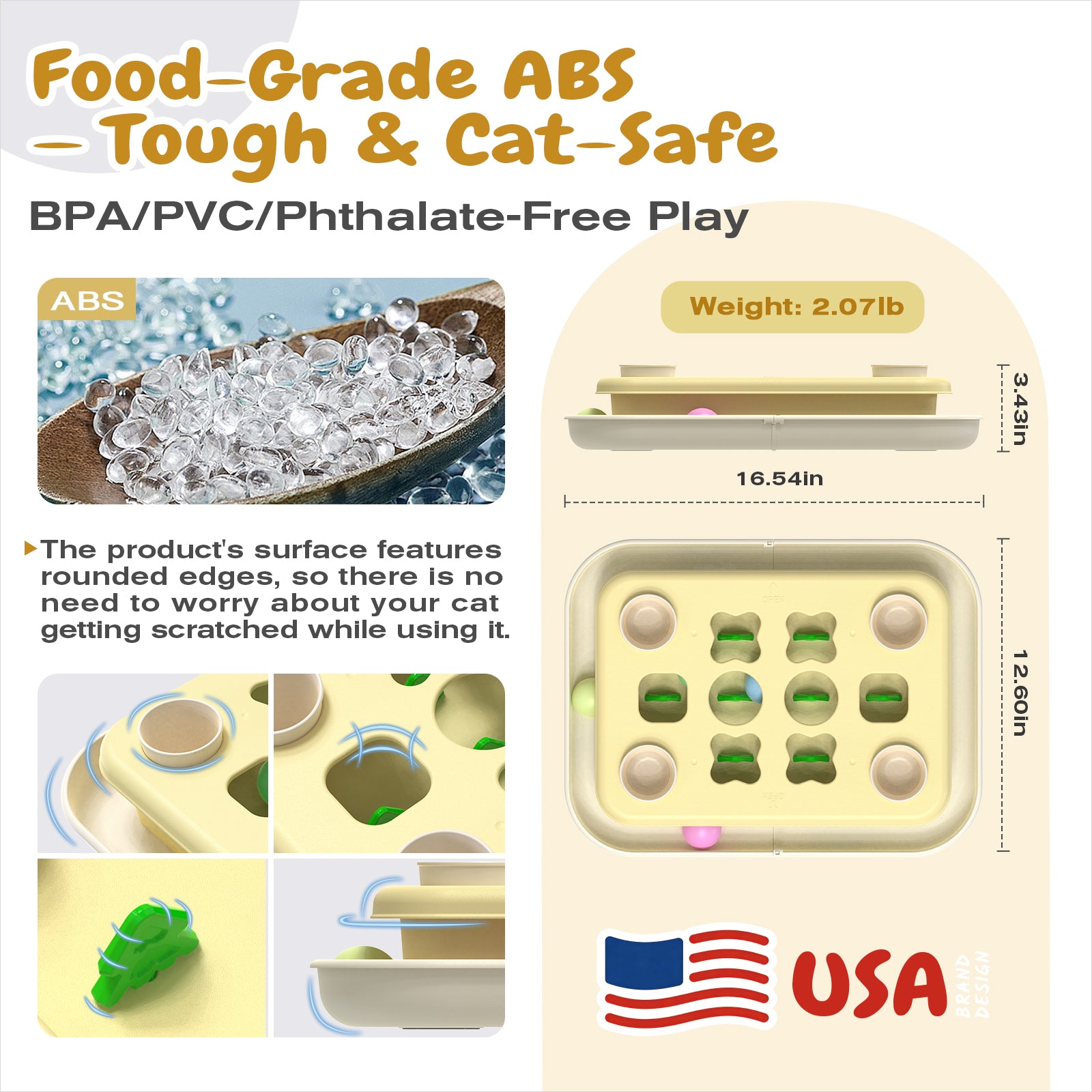 Safe cat toys feel free to use for cats!The main body of the toy is made from food-grade ABS, which is highly enduring and free from any Bisphenol A, PVC, or phthalates. The product's surface features rounded edges, so you don't have to worry about your cat getting scratched while playing with it. Both the raw materials and the product are extremely safe, so you can confidently give it to your cat. |